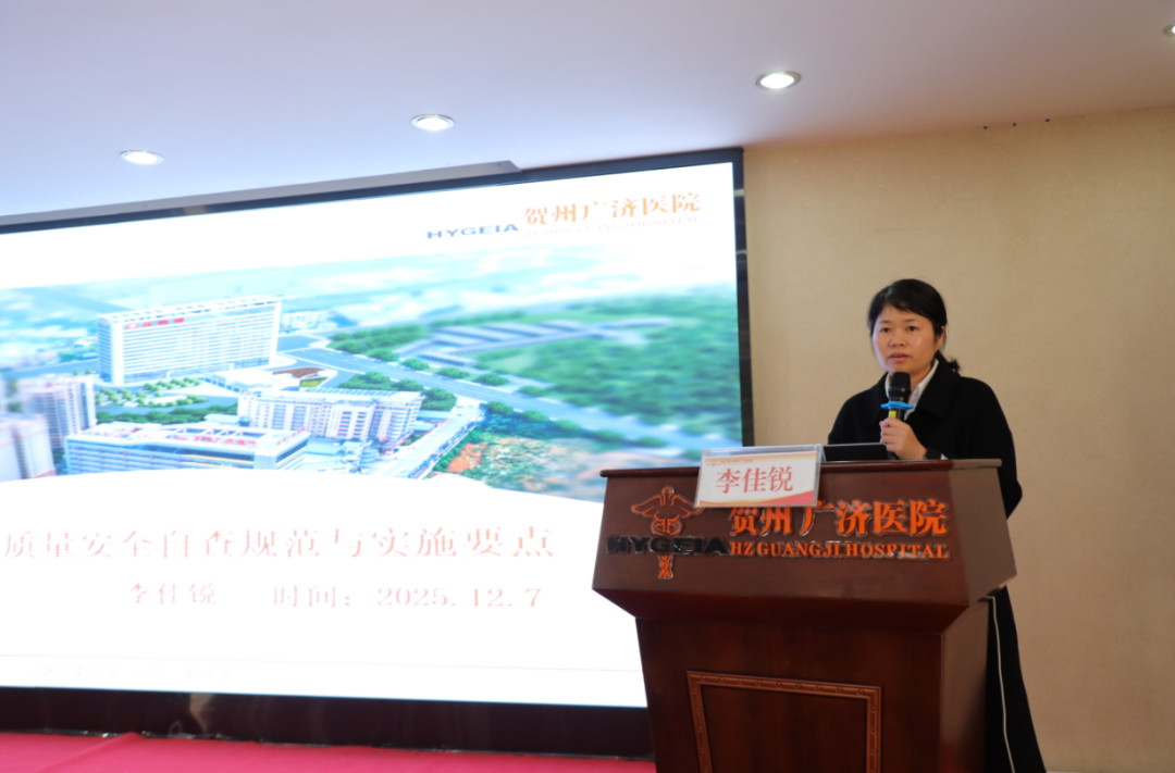 贺州广济医院肾内科护士长李佳锐作题为《血液透析中心质重安全自查规范与实施要点》专题讲座