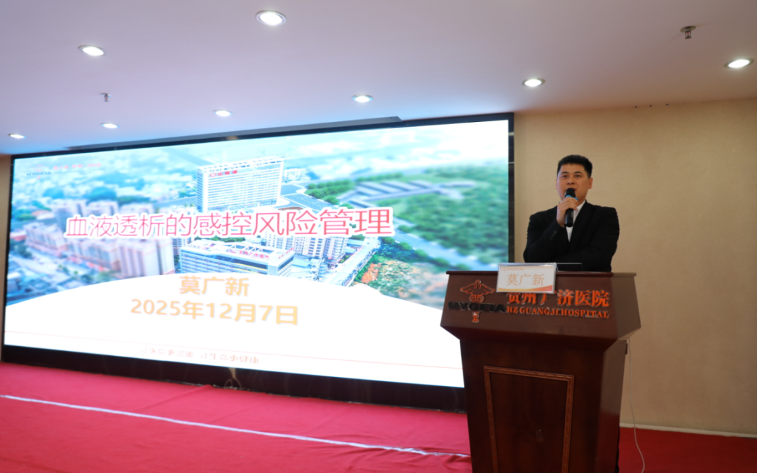 贺州广济医院血透室副护士长莫广新作题为《血液透析感染风险管理》专题讲座