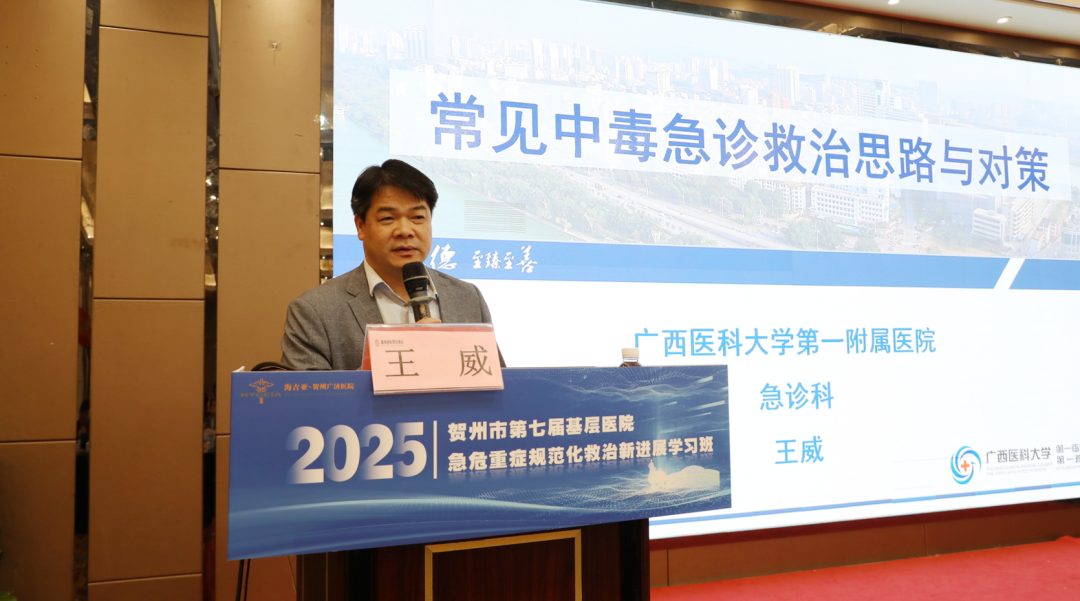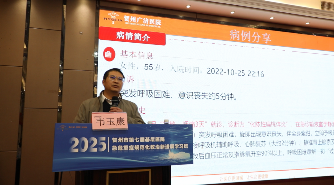 贺州广济医院急诊科副主任医师韦玉康作题为《严重过敏反应的快速识别与救治》专题讲座