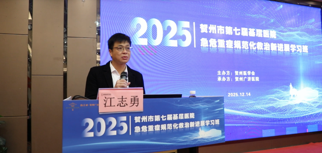 江志勇在致辞中表示,作为中国急诊专科医联体市县协同高质量发展委员会成员单位,贺州广济医院秉持“让救命技术普惠基层”理念,全力搭建学术交流平台,践行“赋能、规范、共进”主题。