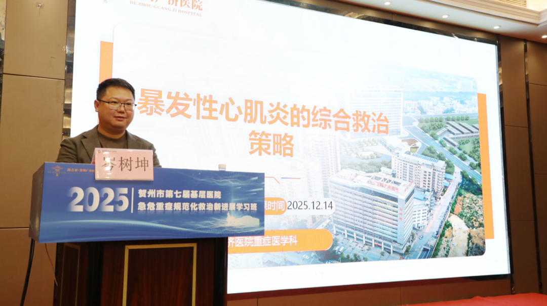 贺州广济医院重症医学科负责人岑树坤作题为《暴发性心肌炎的综合救治策略》专题讲座