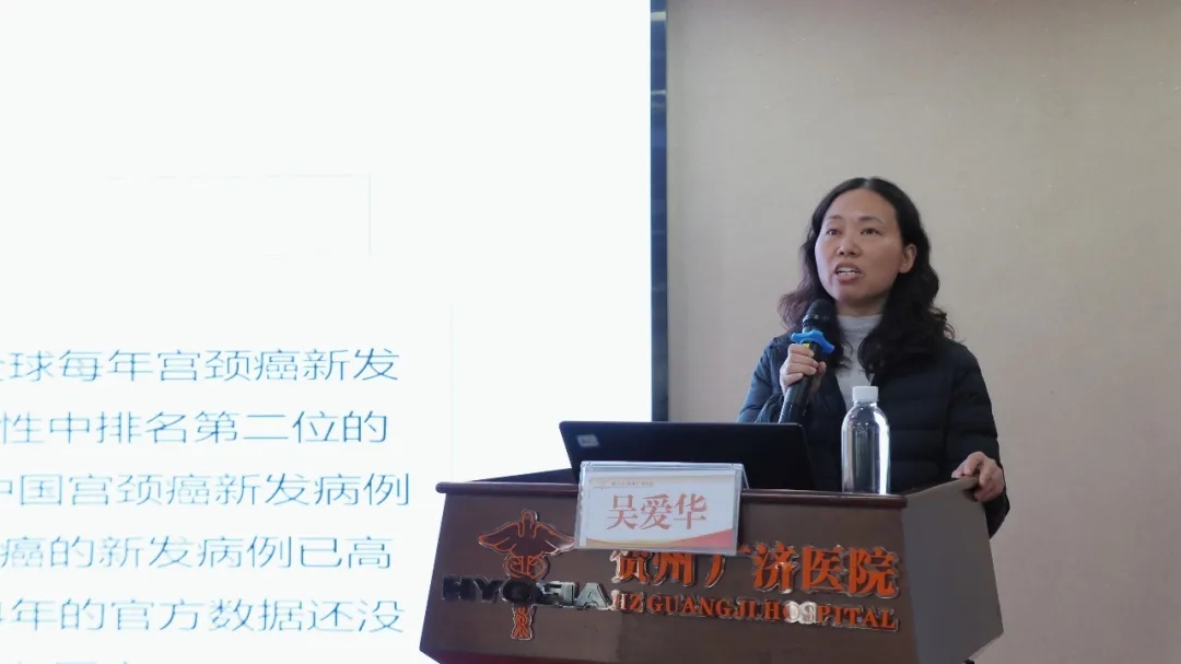 ▲贺州市妇幼保健院妇科主任吴爱华作题为《宫颈上皮内病变的管理策略》专题讲座