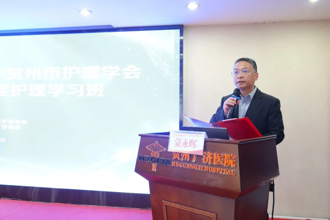 贺州广济医院蒙永晖副院长致欢迎辞,他强调,急危重症护理是医疗救治的关键环节,护理人员必须不断更新知识、提升综合研判与应急处置能力,以适应日益复杂的临床需求。同时,他提出三点期望:一是珍惜机会、全心投入,做到学有所获;二是联系实际、促进转化,真正提升护理质量与患者安全;三是加强交流、共建网络,推动区域专业协作与共同进步。